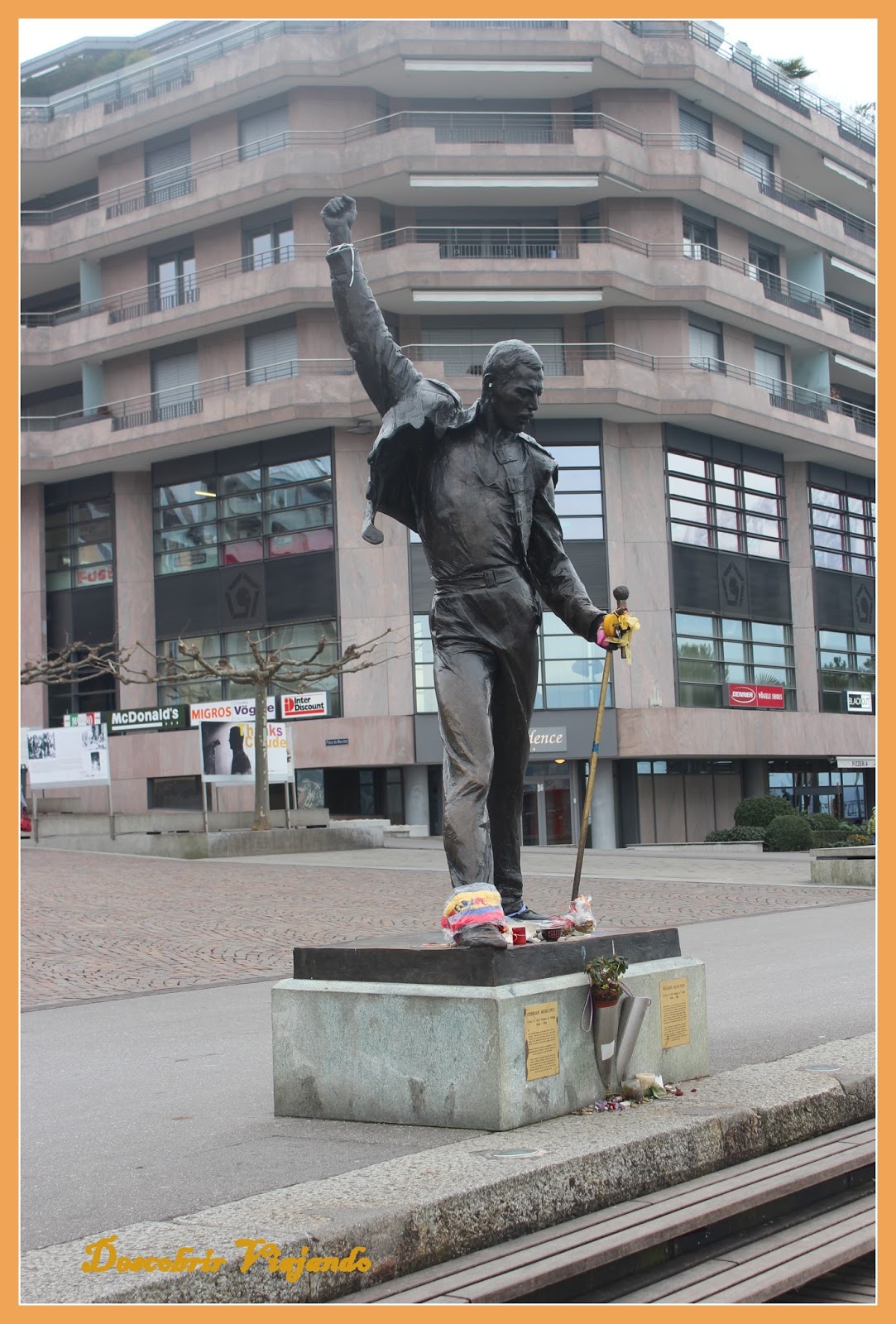 Durante a caminhada encontrámos a estátua de bronze erguida em 1996, em homenagem a Freddie Mercury, na Place du Marche, a particularidade deste local é que o mesmo está sempre com flores, que os seus fãs continuam lá a depositar. Este morava num apartamento com vista para o Lago Léman e adquiriu o "Studio Mountain", onde compôs e gravou o seu último álbum com os Queen - "Made in Heaven".