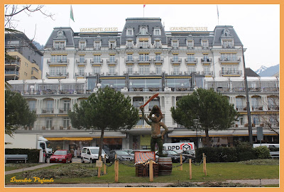 Continuámos a nossa caminhada e encontrámos um edifício absolutamente majestoso, o Grand Hotel Suisse, edifício de 1870, da autoria de Eugène Jost, de estilo Belle Époque e um pouco mais à frente o Montreux Palace, outro luxuoso hotel, que se encontra aberto desde 1906.